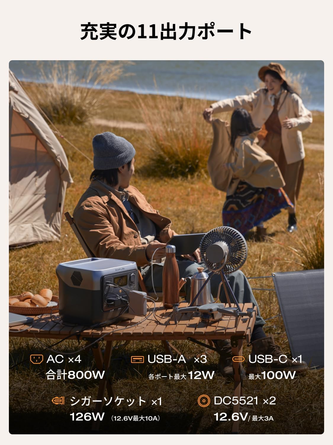 | AC出力 | AC×4(合計800W、サージ1600W) |