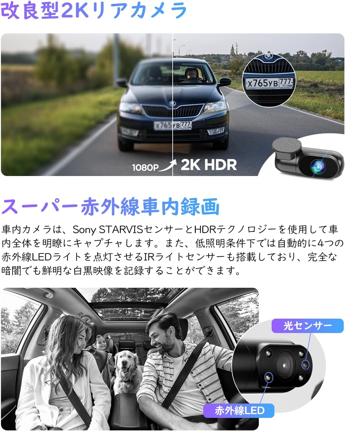- 「前後はSTARVIS 2」「車内はIR対応」で、夜間と車内の両方を意識した構成