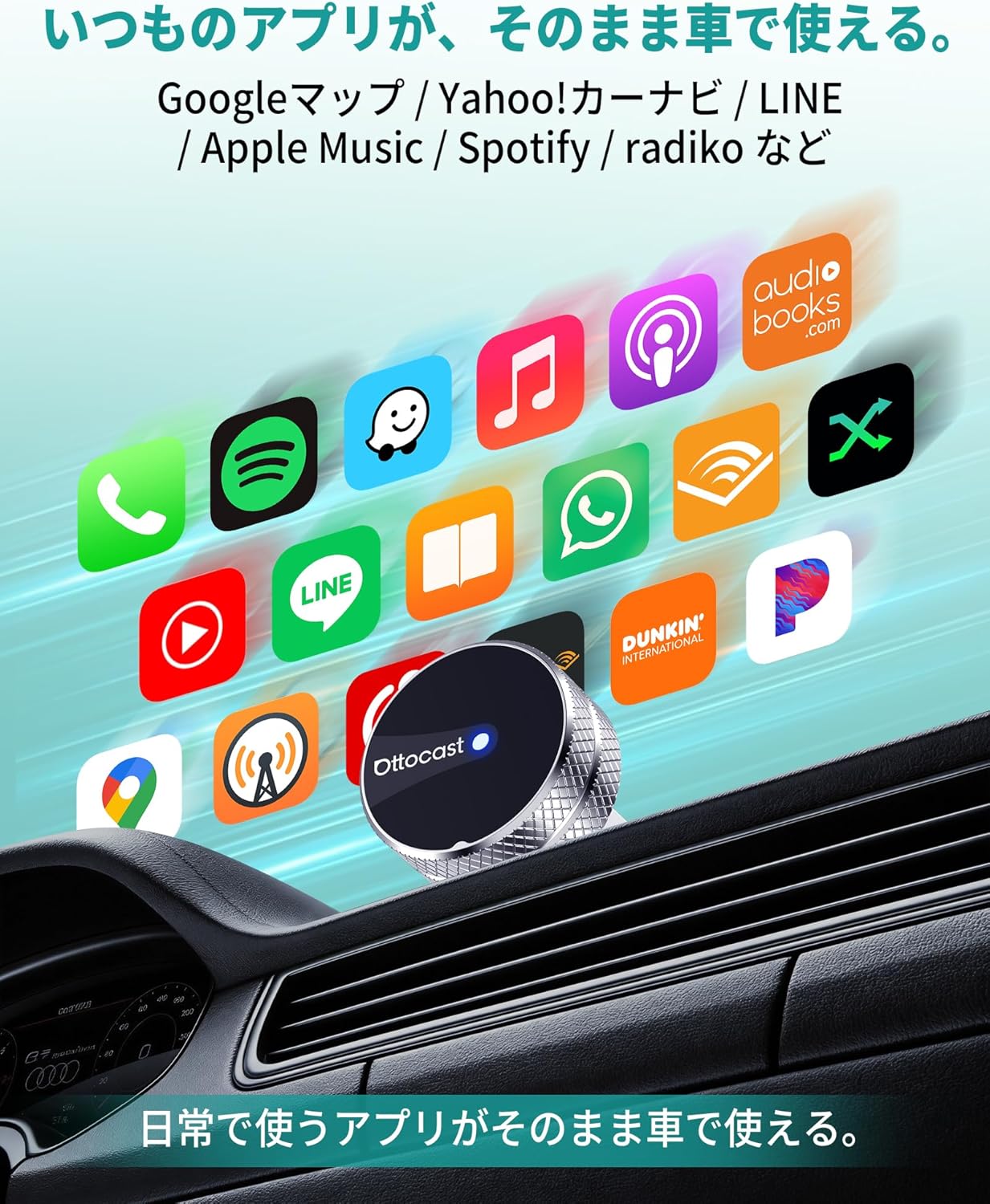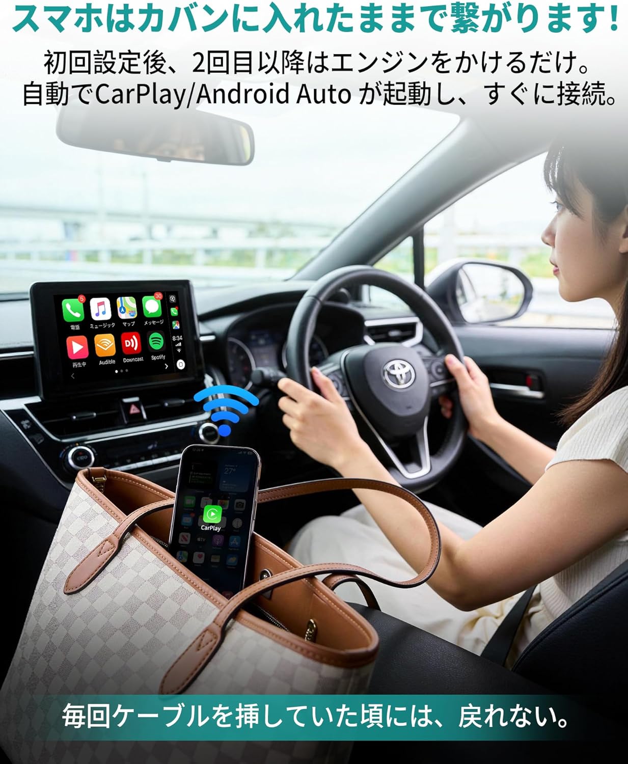役割純正の有線CarPlay / 有線Android Auto をワイヤレス化