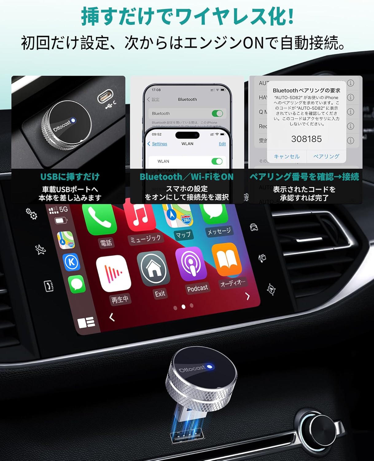 朝の駐車場でエンジンをかけて、スマホをつなぐ手間が地味に積み重なりますよね。
