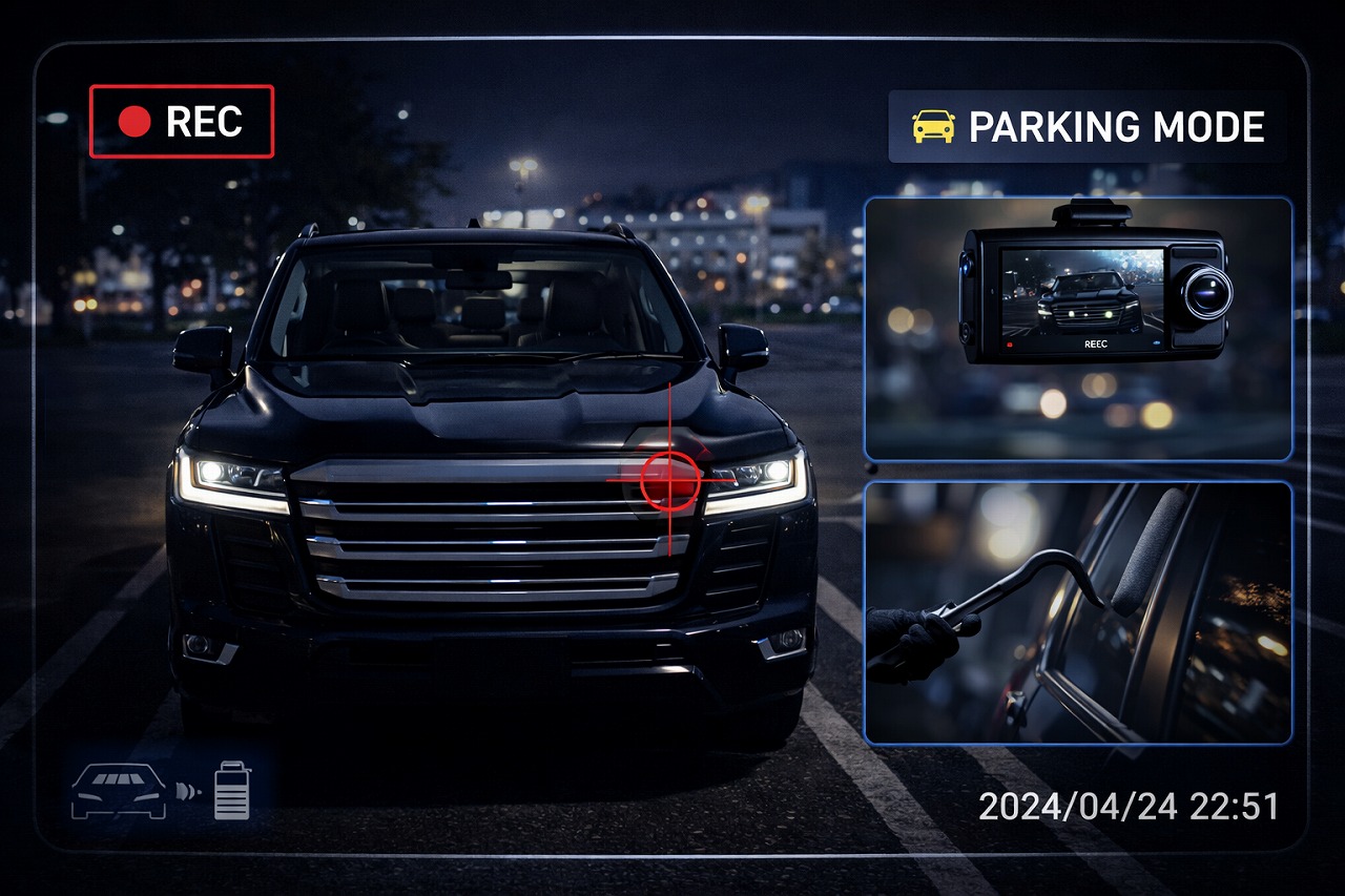 ランクルのような毎日乗る大型SUVには、タイムラプス+衝撃検知の組み合わせが最も現実的です。常時録画は証拠能力が高い反面、バッテリー消費が激しいため、毎日1時間以上走らないなら避けた方が無難。