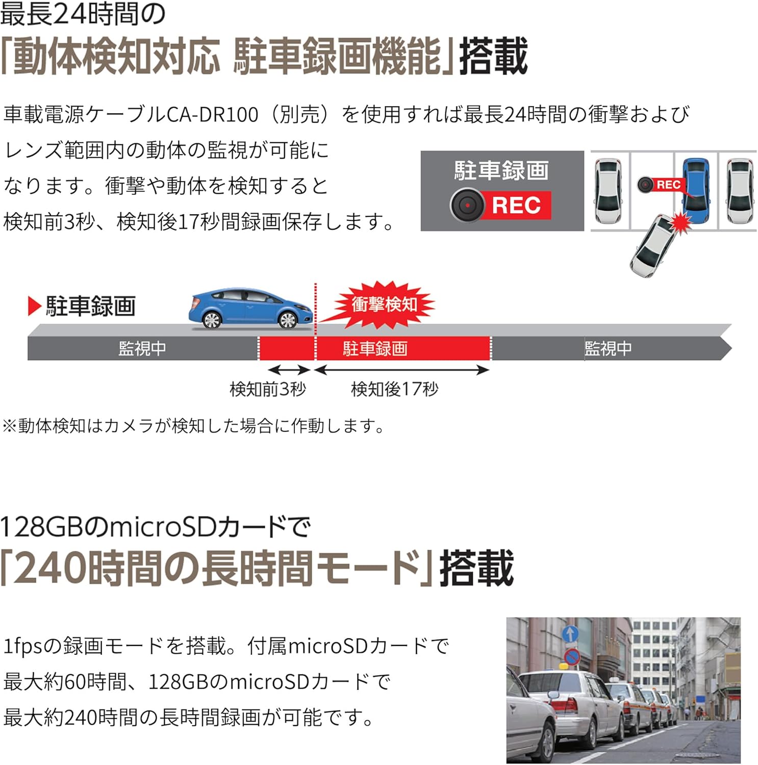 | 駐車監視方式 | 常時 / 衝撃検知 / タイムラプス(最大50時間) |